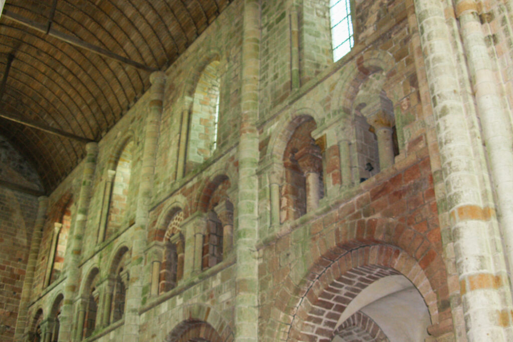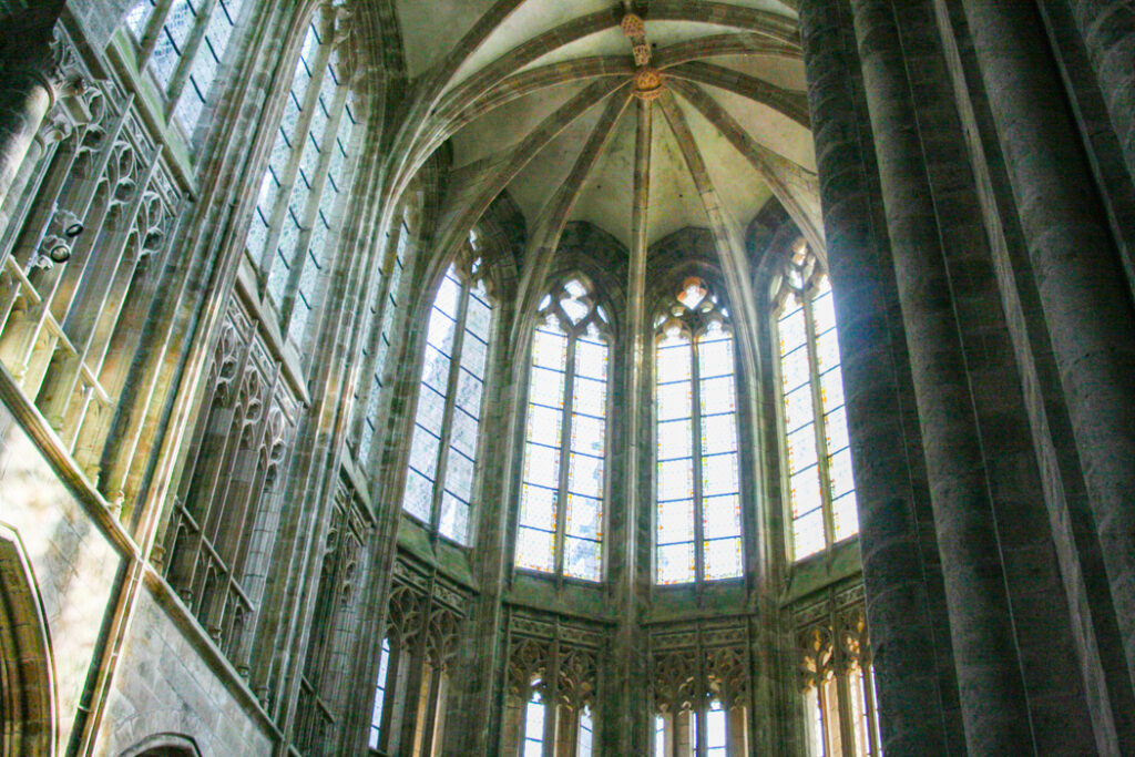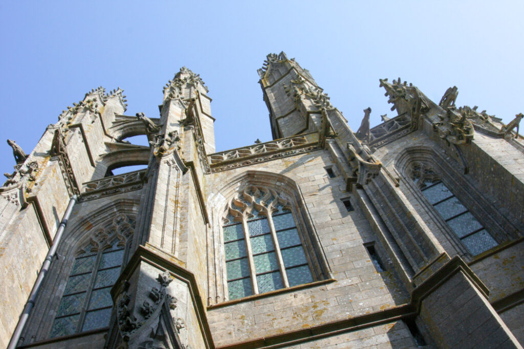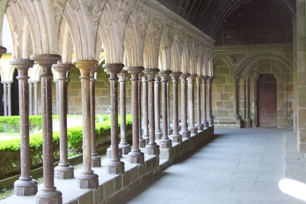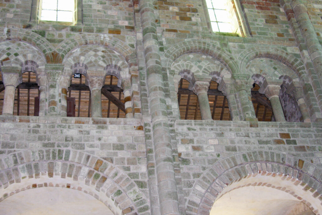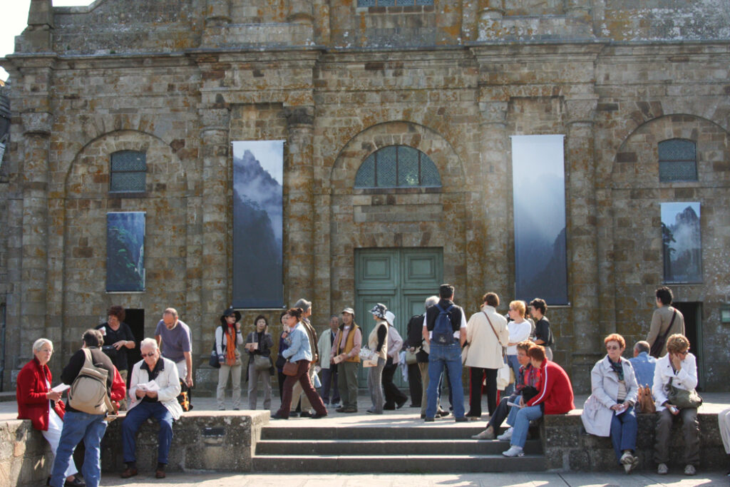 フランス西海岸のノルマンディー地方にある、潮の満ち引きによって陸と海が入れ替わる神秘的な小島と、その上にたつ壮大な修道院のことで、「西洋の驚異」や「海上のピラミッド」とも称され、1979年にユネスコ世界遺産に登録されています。大天使ミカエルのお告げによって創建された歴史を持ち、中世の面影を残す街並みや、名物のオムレツも人気です。私が行った2008年は堤防通路の影響により島の周囲が砂洲化したため、かつての「島」に戻す工事が行われていた時でした。駐車場となっている堤防の代わりに橋でつなぎ、海流により堆積砂を取り除くもので、潮の流れを妨げにくい脚付きの橋(長さ約760m)が2014年7月22日に開通しました。